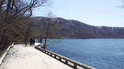 湖も透明でキレイです。 次の目的地、景勝地 奥入瀬渓流に向かいます。 |