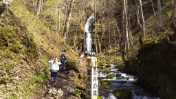 暗門の滝を見に行けると思っていたら、夏のちょっとの期間しか行けないとの事。しかも、下半身は濡れる位の川の中を行くみたい。本当の装備をしないとダメという事が分かりました。甘かった・・。 |