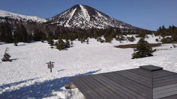 途中の立ち寄り場所。白神山地ビジターセンター。岩木山がとてもキレイ。 |