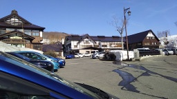 秘湯 酸ヶ湯温泉旅館に到着。標高925m。スキーをやっている人もいました。 |