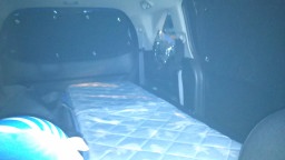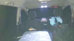 ここでミス。布団を忘れてしまって・・・・寒かった(笑)。隣にも車がいるので、たまに暖気して車を温めました。 |