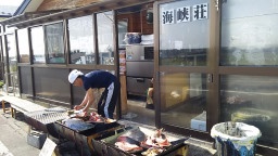 マグロを焼いているお店の方がいました。 |