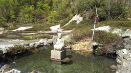 江戸時代中期開湯で古くからの湯治の宿。ここの名物は、総ヒバ造りの大浴場「ヒバ千人風呂」です。さすがに中は写真は撮れませんw。一応混浴ですが、女性用に仕切りもあり、中は広く感じませんでした。ヒバの香りは良いですね。 |