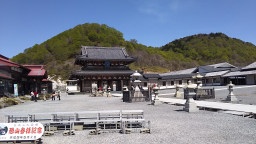 中の左側にある赤い屋根の中で、イタコの口寄せをやっています。一回3000円で15分位だそうです。イタコは地元の人かと思ったら、県外から力のある人を呼ぶそうです。基本、平日はやってないとの事。 |
