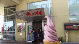 恐山から弘前公園へ。途中の浅虫温泉の道の駅「ゆーさ浅虫」で名物カシスソフトを食べました。かなり大きい施設で温泉もあります。観光客がいっぱいでした。 |