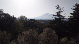 弘前城窓から見える、岩木山。 |