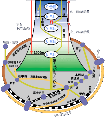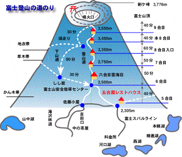 | 5合目より登山開始(一時間程、体を慣らす) | ||