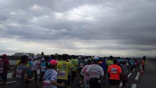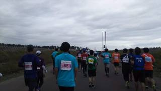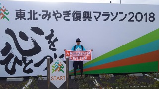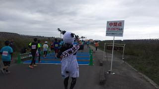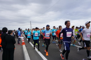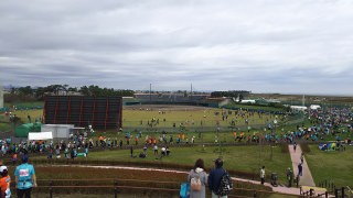| このマラソンは昨年に続き、第2回目で、ランナーは12000人というかなり規模の大きい大会です。全国から芸能人を含め、沢山の人が来ています。この地域のすぐ側に仙台空港もあるので、アクセスも良いんでしょうね。高台からパシャリ。 | |