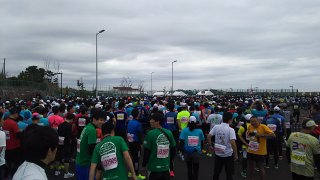 | 走る前にトイレには行ったんですが、若干寒くてスタート前にトイレに行きたくなり、1区間目は我慢したんですが、第2区間で、我慢出来なくなり寄りました。しかし、この渋滞。しかも男子2つ、女子2つしかトイレが無いなんて・・・。大渋滞の為、多分20分位ロスした感じです。これを取り戻すため若干ペースを上げて走りましたが、後々これがひびきました。 | |