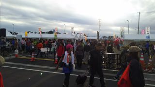 | あと少しです。走っている身とすれば、この距離でも長い。 途中で、「猫ひろし」さん、「小倉智昭」さんと握手出来ました。 最後の1kmは声援が力になり、歩かないでラストパート!を掛けました。 |