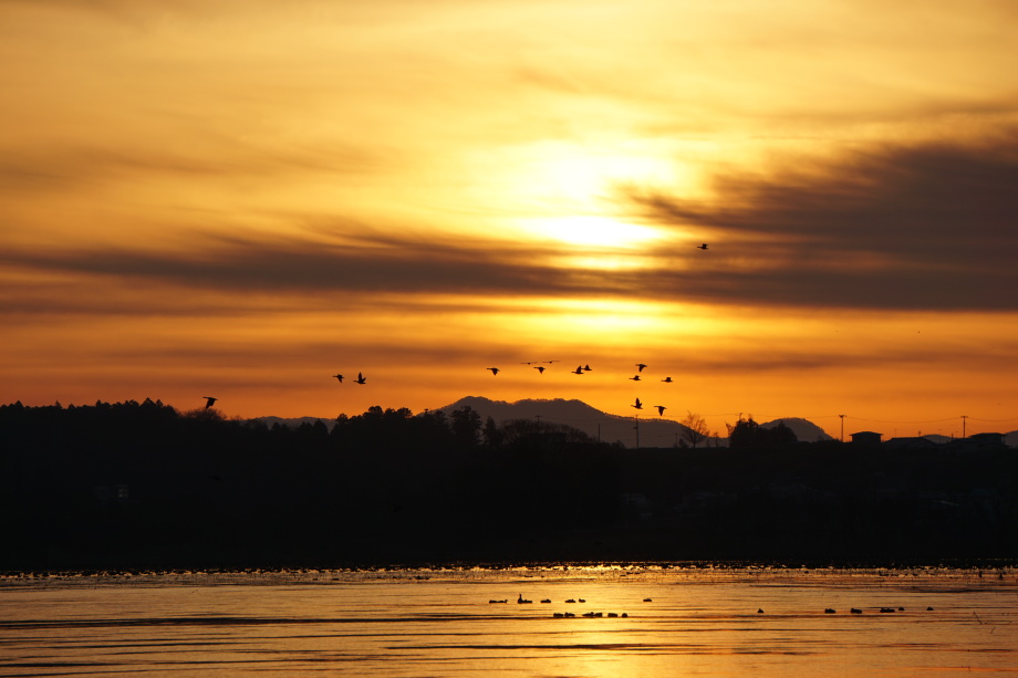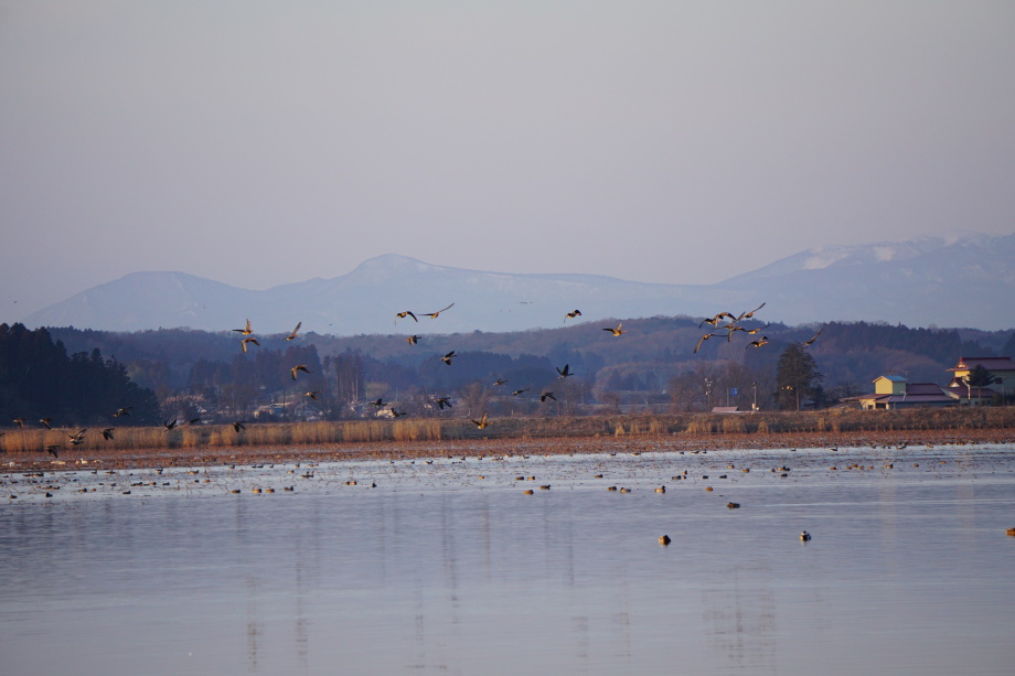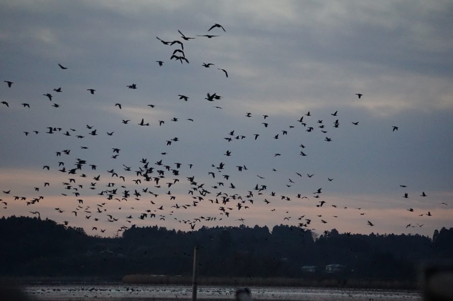 ラムサール条約登録湿地に指定されている伊豆沼(宮城県栗原市)にガンの飛び立ちを見に行ってきました。伊豆沼は職場から15分程度で近く、ちょうど夜勤明けで行くと飛び立ちの時間にちょうど良い感じ。天気も良さそうだったので、仕事帰りにカメラを持って待ち構えました。ガンもですが、朝焼けがとてもキレイで感動しました。伊豆沼にはガンを見るポイントは何箇所かありますが、最初見ていた場所は数人しかいなくて、帰り際にたくさんのカメラマンが集まっているベストポジションを発見しました。そこでも写真は撮りましたが、次回はそちらで最初から撮ってみたいと思います。