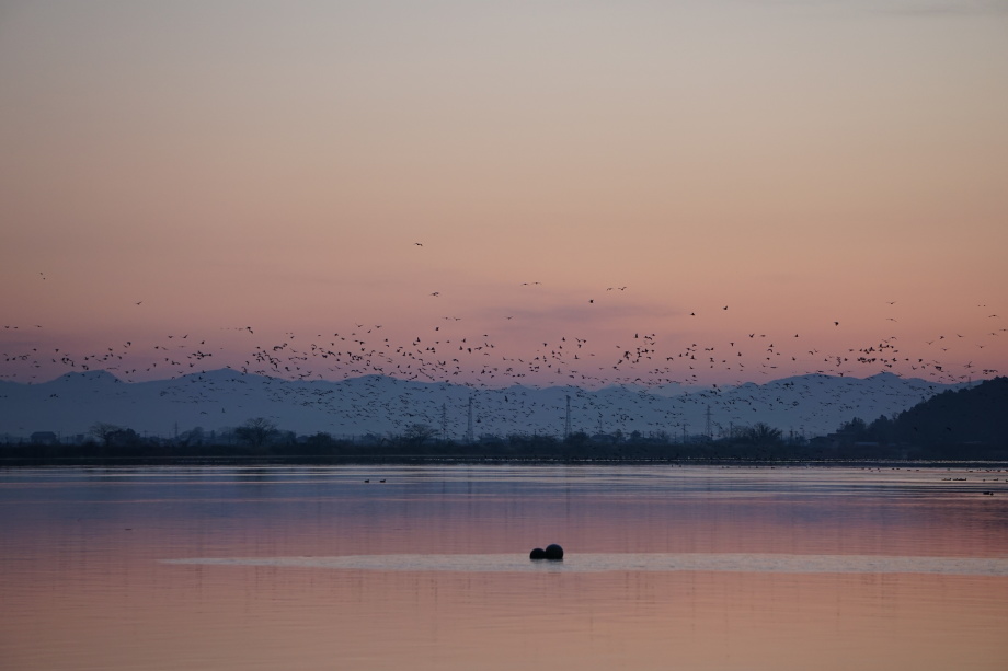 ●本日の日の出時間 6時50分(日の出30分前から徐々にガンが飛び立ちますので、間に合うように準備します。寒さ対策必須!)