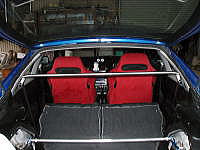 インターネットで作れると載っていたのでチャレンジしてみました。作り方はステンレスの丸棒を切って端を万力で潰し、ドリルで穴を開けただけ。作るまでは簡単に出来ましたが、車に取り付けるのが少々てこずりました。(テンションをかけて取り付ける為、なかなかボルトが締められなかった)。装着後のインプレですが、後ろの剛性がかなり上がりました。リアタワーバーのみだと段差でボコボコ揺れてたのですが、それがさらに収まった感じです。かなり効果はありますが、後ろに人が乗れなくなりました・・(T_T)(頭がぶつかる為)