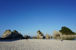 | さっぱ船後は見る場所も多いので、色々と散策です。写真の所がメインの「浄土ヶ浜」。海水浴場にもなっています。宮城はコロナで全場所遊泳禁止ですが、ここは普通にやっていました。 |