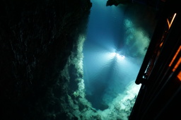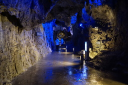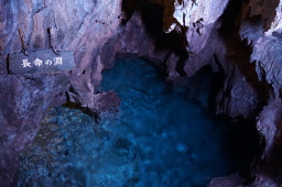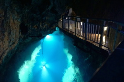 | 龍泉洞は日本三大鍾乳洞のひとつ。売りはドラゴンブルーと称される地底湖色です。水の中はかなり深いと思います。 | |