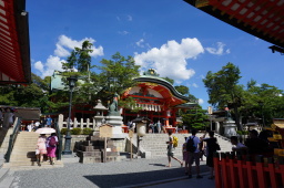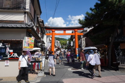 一時間位登ってやっと頂上。中々疲れました。折り返しも別ルートですが、鳥居のオンパレード。暑かったので「冷やしあめ」ドリンクを飲みました。17時位なので、今日の観光地はここで終了です。 |