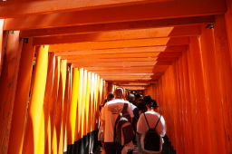 | 永遠と鳥居トンネルをくぐります。所々に休憩する茶屋はあります。 | |