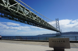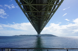 | 淡路島へ繋がる「明石海峡大橋」。近くで見ると迫力あります。 | |
