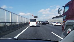 やっぱりお盆ですね〜。高速道路に乗ってすぐ渋滞になりました。全然進まないので、一般道で行く事に。 |