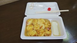 姫路城から大阪方面に戻ります。せっかくなんで明石海峡大橋を経由。明石PAで食べた、「明石焼き」。イメージは出し汁で食べるたこ焼き。 |