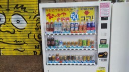 大阪城からレトロな町「新世界」へ。大阪らしい自販機発見。50円て書いてあるけど、全部品切れかよw |