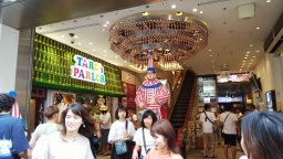 阪神が優勝すると飛び込む「えびす橋」です。ちょうど橋周辺で仮面女子という人達がLIVEしていました。大阪駅に戻ります。 |