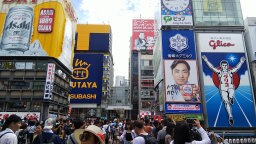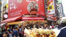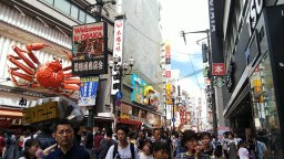 新世界から「道頓堀」へ。やっぱり独特の街並みです。すれ違いにくい位に観光客がいました。 |