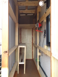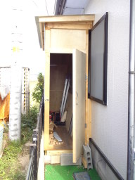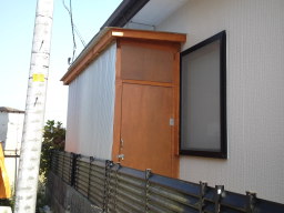 | 屋根と左脇はトタン(ガルバリウム)を貼り、右側は家の外壁に直接くっつけます。 | |