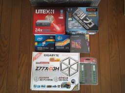 | 構成をさらっと説明。 CPU:10年は使えるように上級の3770Kを選択(せっかくの自作なんで、オーバークロックにも対応させる為、Kモデル)。 マザー:Kモデルを選んだ事+PCの中の重要なパーツなので、上位のZ77(オーバークロック対応)の中ランクを選択。 メモリ:必要十分な8GB(4GB×2)。これ以上は重い動作をしなければ必要ないらしい。 SSD:人気、信頼性のあるインテル製。Cドライブに120GBで十分。 ドライブ:DVDスーパーマルチの人気のある安いやつ。ブルーレイはまだ高いからw ケース:空前の大ヒットモデル。冷却重視のATX。ファン4つとファンコンが標準装備で4000円位。安すぎるw。売れているので、カスタム情報が豊富なのも選んだ理由のひとつです。本当は静音モデルを選びたかったけど値段が高かったので・・^^; 電源:自分の仕様だと500wで十分。あとはエコなブロンズ80プラスを選択。 |
