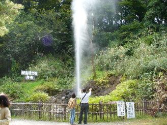 かんけつ泉・・地下水がマグマにより摂氏130度程まで熱せられ、一部が水蒸気となりその圧力で残りの熱湯が地上に吹き出すものです。