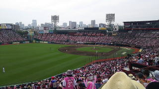 平成30年6月23日 楽天生命パーク お勧め度:★★★ 仙台 2回目の野球観戦です。ガールズデーというイベントで、女性がピンクのユニフォームを着て応援していました。ボーリング場でまさかの1等の観戦チケットが当たり、それで娘と行ってきました。試合は楽天対日ハムで、結果は3対2で楽天の勝利でした。ルールの分からない娘でしたが、色々な選手の応援や一斉に風船を飛ばしたりと、楽しんでくれていたようです。