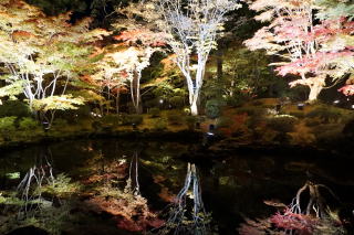 令和元年11月10日 臨済宗妙心寺派 円通院 お勧め度:★★★★ 宮城県宮城郡松島町松島字町内67 この紅葉時期にライトアップするので、夕方に家族で行ってきました。17時半からでしたが、かなり混んでいて30分位並んでやっと中へ。中は色々な色の照明で木々が照らされ、とてもキレイでした。左の写真は一番メインの場所で池にも反射して映る紅葉。(入場料大人800円)。