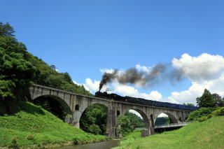 令和2年8月1日 遠野駅周辺 お勧め度:★★★★★ 岩手県遠野市新穀町5 遠野駅に着き、SLを近くで撮りたかったんですが、燃料補充で離れた所に停車していた為、動き出しを撮ろうと先回り。駅から出て最初に通る小さい橋で待ち構えました。そして、SLがホームから出る辺りから連写・・・。凄い近距離で大迫力の写真が撮れました。初めてにしては上手くいった感じです。橋を抜ける時の煙が凄く、通る瞬間はかわしました。