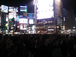 | その後、友人IBUと待ち合わせしていた渋谷へ。写真の場所がスクランブル交差点です。週末なので、空間が人で埋め尽くされています。若い人が多い印象です。 | |