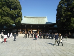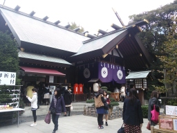 | 靖国神社から徒歩10分位にある「東京大神宮」です。縁結びで有名らしく、写真を見て分かるように女性率は非常に高かったです。 | |