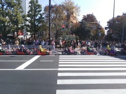 | マリオカートの集団です。実は昨日も秋葉原で見ました。公道を走っているので、カートにはちゃんとナンバーが付いていました。 | |