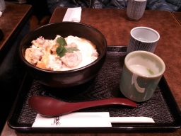 | お昼は親子丼にしてみました。創業1906年の老舗、「鳥藤分店」です。味は他では食べられない塩味で、ゆずっぽい香りのある上品な味でした。激ウマ! | |