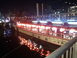 | 夜は浅草の屋形船。2時間の宴会でした。 | |